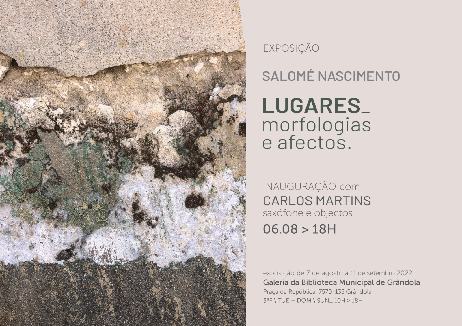 Join us this Saturday, August 6th 2022, in Grândola for a special appearance of Carlos Martins during the vernissage of the exhibition “Lugares” by Salomé Nascimento with live painting and improvised music.